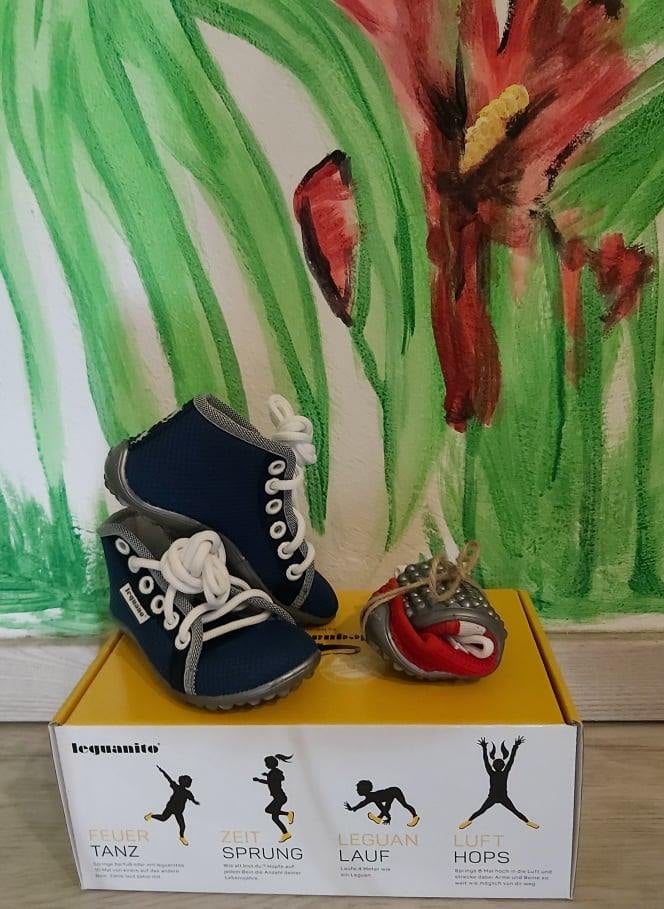 - Zur guter Letzt seht ihr links auf dem Bild einen Schuh der Marke Leguano. Diese Schuhe sind für Familien geeingnet, die das Thema barfuß laufen auch zuhause leben. Leguano hat wirklich super schöne Minimalschuhe. Die Laufsohle ist von den hier vorgestellten Schuhen, die dünnste. Das Obermaterial (der Schaft) ist wie eine Socke die man an hat. Der Schuh sorgt wirklich dafür, sich auf die natürlichste Art und Weise sich fortzubewegen und hemmt die Laufentwicklung in keinster Weise. Das Material ist durch den Stoff super atmungsaktiv.